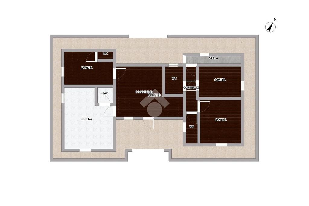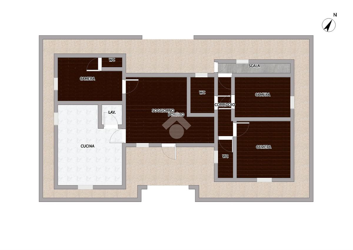 L’ingresso si apre su un luminoso soggiorno, ambiente accogliente e armonioso che rappresenta il cuore della casa. La zona giorno prosegue con un’ampia cucina abitabile, funzionale e ben organizzata, con accesso diretto a una comoda lavanderia separata.